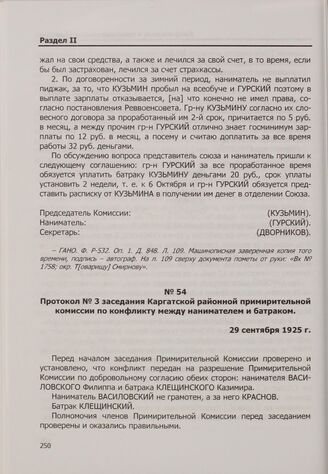 Протокол № 3 заседания Каргатской районной примирительной комиссии по конфликту между нанимателем и батраком. 29 сентября 1925 г. // ГАНО. Ф. Р-532. Оп. 1. Д. 848. Л. 108. Машинописная заверенная копия того времени.
