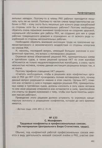 С. Иозефович. Трудовые конфликты в профессиональных союзах. (По материалам Центрального Бюро Статистики труда) // Вестник труда. 1926. № 7-8. С. 111-117.
