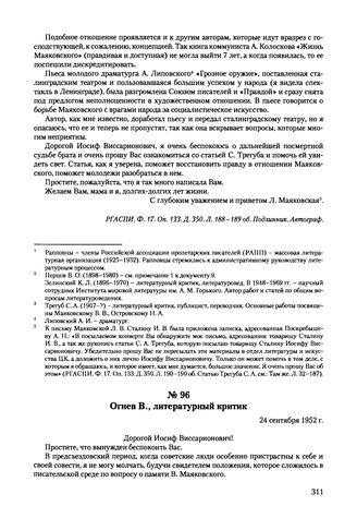 Письма, доложенные Сталину. И.В. Огнев В., литературный критик. 24 сентября 1952 г.