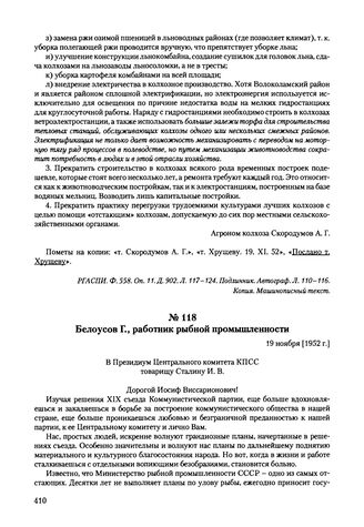 Письма, доложенные Сталину. И.В. Белоусов Г., работник рыбной промышленности. 19 ноября [1952 г.]
