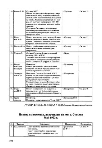Последние письма Сталину. 1952-1953 гг. Реконструкция док. комплекса