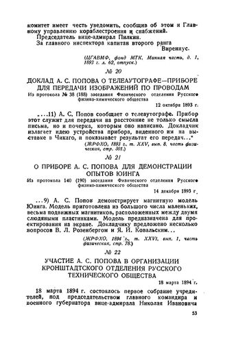 Доклад А. С. Попова о телеаутографе-приборе для передачи изображений по проводам. Из протокола № 38 (188) заседания Физического отделения Русского физико-химического общества. 12 октября 1893 г.