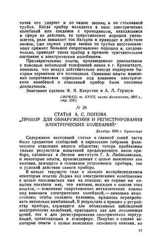 Главная А.С. Попов Документы Статья А. С. Попова „Прибор для обнаружения и регистрирования элект...