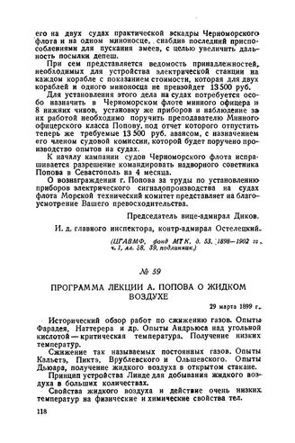 Главная А.С. Попов Документы Программа лекции А. Попова о жидком воздухе. 29 марта 1899 г.