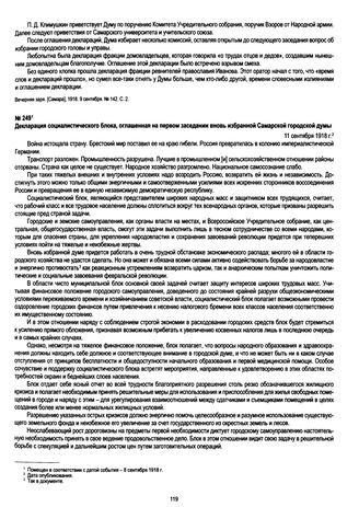 Декларация социалистического блока, оглашенная на первом заседании вновь избранной Самарской городской думы. 11 сентября 1918 г.