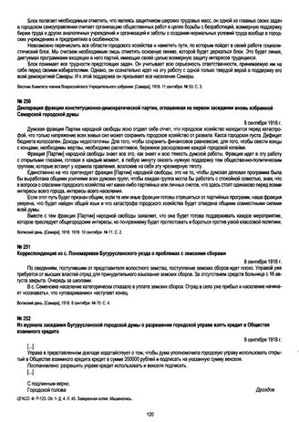Декларация фракции конституционно-демократической партии, оглашенная на первом заседании вновь избранной Самарской городской думы. 8 сентября 1918 г.