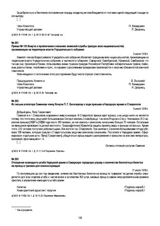 Приказ № 103 Комуча о привлечении к несению воинской службы граждан всех национальностей, проживающих на территории власти Учредительного собрания. 9 июля 1918 г. // ЦГАСО. Ф. P-4140. Оп 1. Д. 42. Л. 35. Типограф. экз.