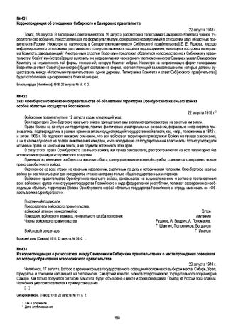 Указ Оренбургского войскового правительства об объявлении территории Оренбургского казачьего войска особой областью государства Российского. 22 августа 1918 г.