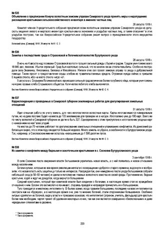 Объявление о предписании Комуча волостным земским управам Самарского уезда принять меры к недопущению расхищения крестьянами сельскохозяйственного инвентаря в имениях частных лиц. 28 августа 1918 г. // Волжский день [Самара]. 1918. 28 августа. № 61. С. 2.