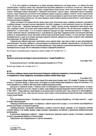 Заметка о количестве состоящих в союзе металлистов в г. Самаре безработных. 10 сентября 1918 г.