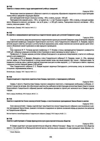 Из заметки о завершившихся краткосрочных педагогических курсах для учителей Самарского уезда. 7 августа 1918 г.
