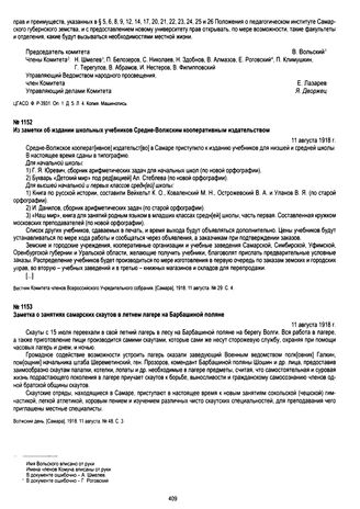Из заметки об издании школьных учебников Средне-Волжским кооперативным издательством. 11 августа 1918 г. // Вестник Комитета членов Всероссийского Учредительного собрания [Самара]. 1918. 11 августа. № 29. С. 4.