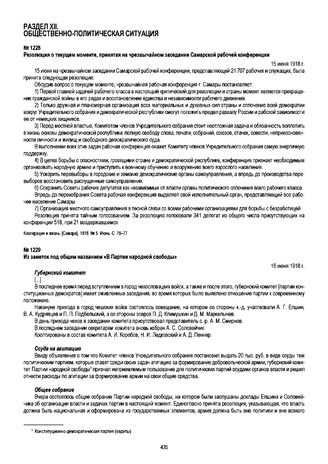 Главная Под знаменем Комуча. Самарский край, июнь-октябрь 1918 г. Резолюция о текущем моменте, принятая на чрезвычайном заседании Сам...