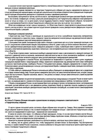 Из статьи Э. Стрикса «Позиция латышей» о разногласиях по вопросу отношения к советской власти и Учредительному собранию. 8 августа 1918 г.