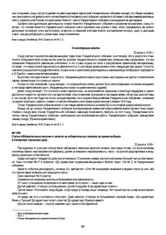 Статья «Избирательные мелочи» о записях на избирательных записках во время выборов в Самарскую городскую думу. 23 августа 1918 г.