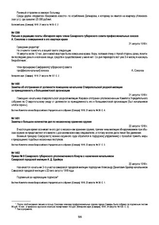 Приказ № 8 Самарского губернского уполномоченного Комуча о назначении начальником Самарской городской милиции А.Д. Брайера. 22 августа 1918 г.