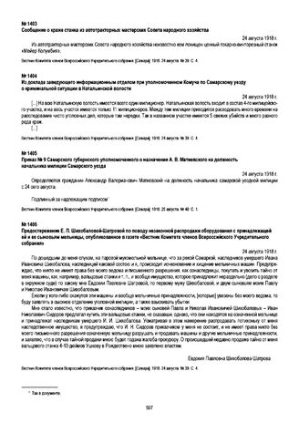 Сообщение о краже станка из автотракторных мастерских Совета народного хозяйства. 24 августа 1918 г. // Вестник Комитета членов Всероссийского Учредительного собрания [Самара]. 1918. 24 августа. № 39. С. 4.