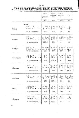 Таблица сравнительных цен на продукты питания и промышленные товары по Вятской губ. на 1 июля 1914 г. и 1 марта 1917 г., составленная Вятской казенной палатой. 24 марта 1917 г.