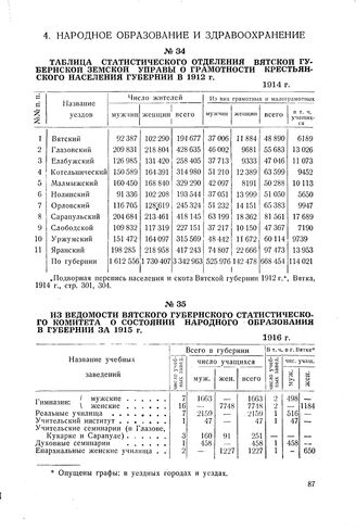 Из ведомости Вятского губернского статистического комитета о состоянии народного образования в губернии за 1915 г. 1916 г.