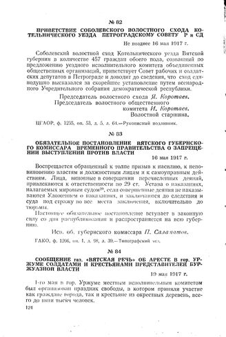 Приветствие Соболевского волостного схода Котельнического уезда Петроградскому Совету Р и СД. Не позднее 16 мая 1917 г.