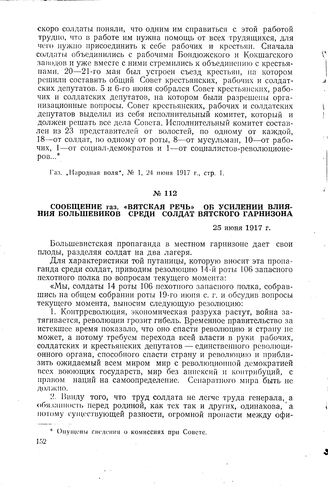 Сообщение газ. «Вятская речь» об усилении влияния большевиков среди солдат Вятского гарнизона. 25 июня 1917 г.
