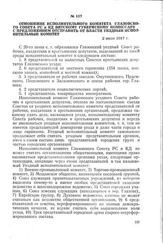 Отношение исполнительного комитета Глазовского Совета PC и КД вятскому губернскому комиссару с предложением отстранить от власти уездный исполнительный комитет. 2 июля 1917 г.