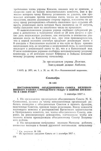 Постановление объединенного Совета Белохолуницкого района Слободского уезда о взятии им власти в свои руки. 1 сентября 1917 г.