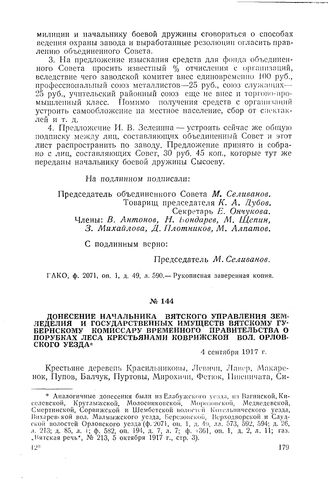 Донесение начальника Вятского управления земледелия и государственных имуществ вятскому губернскому комиссару Временного правительства о порубках леса крестьянами Коврижской вол. Орловского уезда. 4 сентября 1917 г. // ГАКО, ф. 2071, оп. 1, д. 49, л. 707. Машинописный подлинник.