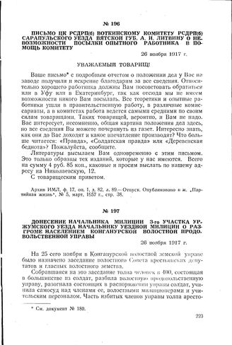 Донесение начальника милиции 3-го участка Уржумского уезда начальнику уездной милиции о разгроме населением Конганурской волостной продовольственной управы. 26 ноября 1917 г.