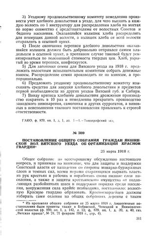 Постановление общего собрания граждан Якшинской вол. Вятского уезда об организации Красной гвардии. 25 марта 1918 г.