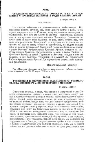 Обращение Малмыжского Совета PC и КД к трудящимся с призывом вступить в ряды Красной Армии. 5 марта 1918 г. // Газ. «Известия Малмыжского Совета КР и СД», № 20, 25 марта 1918 г., стр. 1.