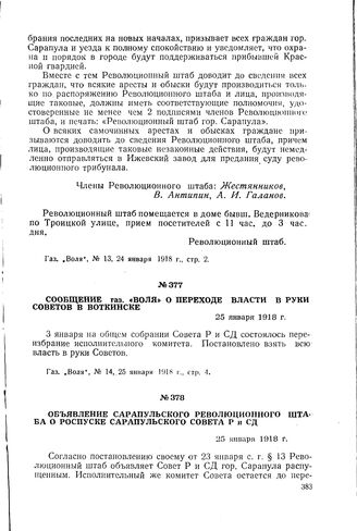 Объявление Сарапульского Революционного штаба о роспуске Сарапульского Совета Р и СД. 25 января 1918 г.