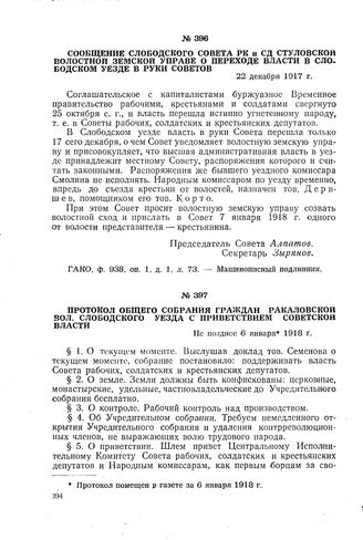 Сообщение Слободского Совета РК и СД Стуловской волостной земской у...