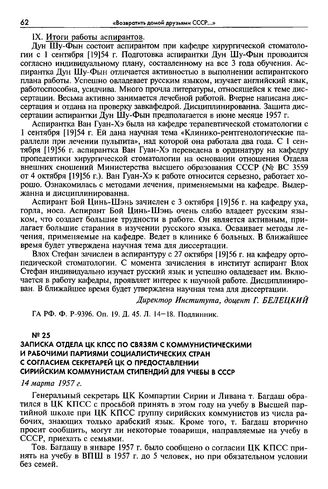 Записка отдела ЦК КПСС по связям с коммунистическими и рабочими партиями социалистических стран с согласием секретарей ЦК о предоставлении сирийским коммунистам стипендий для учебы в СССР. 14 марта 1957 г.