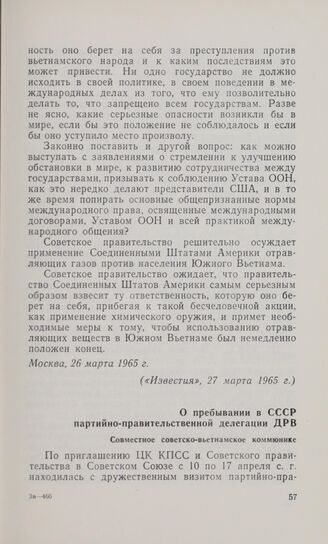 О пребывании в СССР партийно-правительственной делегации ДРВ. Совместное советско-вьетнамское коммюнике // «Правда», 18 апреля 1965 г.