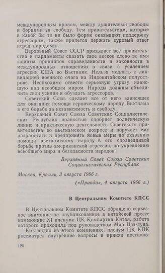 В Центральном Комитете КПСС // «Правда», 1 сентября 1966 г.