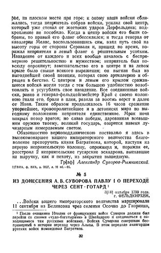 1799 г. 3 октября. Из донесения А. В. Суворова Павлу I о переходе через Сент-Готард // ЦГВИА, ф. ВУА, д. 2827, л. 27-34.