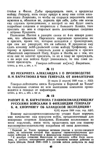 1809 г. 6 апреля. Рапорт П. И. Багратиона главнокомандующему русскими войсками в Финляндии генералу Б. Ф. Кноррингу об Аландской экспедиции