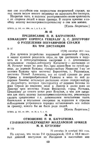 1811 г. 22 сентября. Отношение П. И. Багратиона главнокомандующему Молдавской армией М. И. Кутузову // ЦГВИА, ф. 103, оп. 209г, св. 1, д. 3, л. 49.