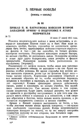 1812 г. 25 июня. Приказ П. И. Багратиона войскам второй Западной армии о подготовке к атаке неприятеля