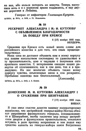 Рескрипт Александра I М. И. Кутузову с объявлением благодарности за победу при Кремсе. 5 [17] ноября 1805 года, Нейдорф // ЦГВИА, ф. ВУА, д. 3112, л. 6. Копия.
