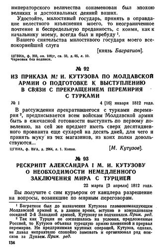 Из приказа М. И. Кутузова по Молдавской армии о подготовке к выступлению в связи с прекращением перемирия с турками. 4 [16] января 1812 года // ЦГВИА, ф. ВУА, д. 2964, л. 1. Копия.