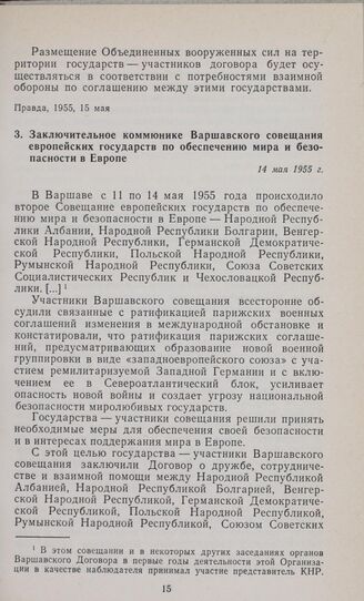 Заключительное коммюнике Варшавского совещания европейских государств по обеспечению мира и безопасности в Европе. 14 мая 1955 г.