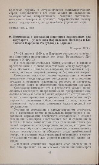 Коммюнике о совещании министров иностранных дел государств — участников Варшавского Договора и Китайской Народной Республики в Варшаве. 28 апреля 1959 г.