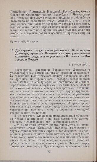 Декларация государств — участников Варшавского Договора, принятая Политическим консультативным комитетом государств — участников Варшавского Договора в Москве. 4 февраля 1960 г. // Правда, 1960, 5 февраля.