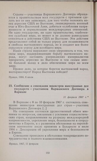 Сообщение о совещании министров иностранных дел государств — участников Варшавского Договора в Варшаве. 11 февраля 1967 г.