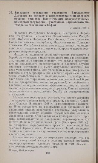 Заявление государств — участников Варшавского Договора по вопросу о нераспространении ядерного оружия, принятое Политическим консультативным комитетом государств — участников Варшавского Договора на совещании в Софии. 7 марта 1968 г. // Правда, 1968, 9 марта.