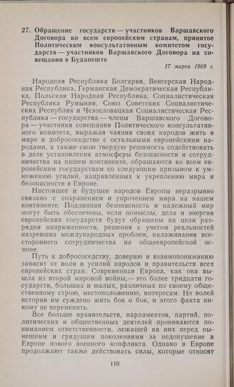 Обращение государств — участников Варшавского Договора ко всем европейским странам, принятое Политическим консультативным комитетом государств — участников Варшавского Договора на совещании в Будапеште. 17 марта 1969 г.