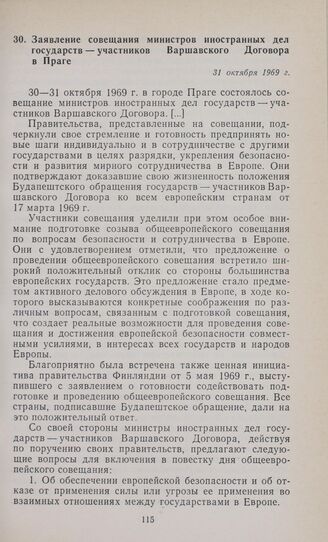 Заявление совещания министров иностранных дел государств — участников Варшавского Договора в Праге. 31 октября 1969 г.
