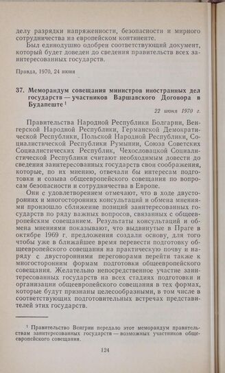 Меморандум совещания министров иностранных дел государств — участников Варшавского Договора в Будапеште. 22 июня 1970 г. // Правда, 1970, 27 июня.